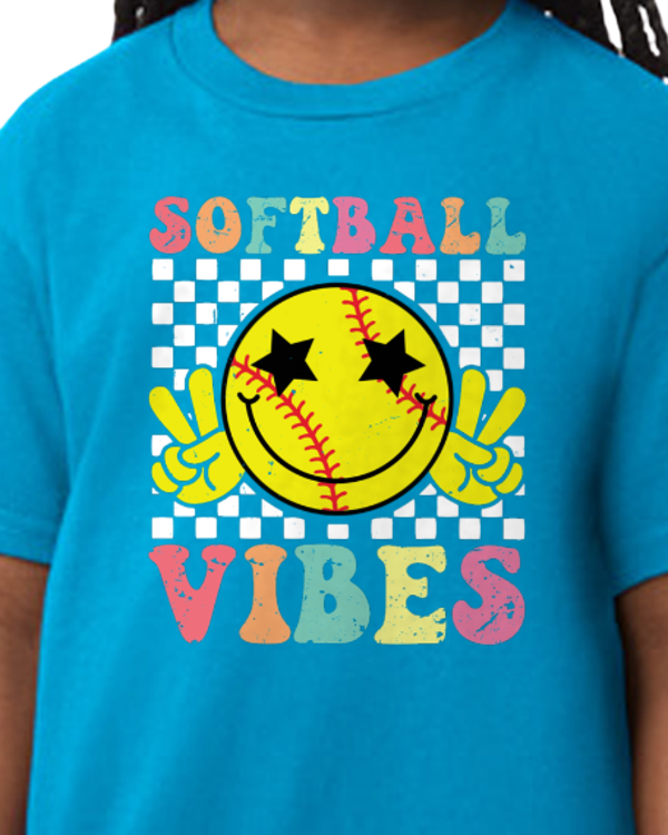 Bring the good energy with our Softball Vibes tee. Featuring a bold, retro-style smiley softball graphic and vibrant colors, this shirt is perfect for players, fans, and anyone who loves the game. Comfortable and fun, it’s an easy go-to for game days or everyday wear—because it’s always a good day for softball vibes.